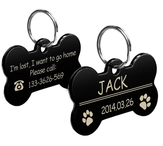 Transformez chaque médaille en un bijou distinctif, gravé (ou imprimé) avec les détails essentiels de votre compagnon : le prénom de votre chien et votre numéro de téléphone.